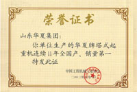 華夏牌塔式起重機(jī)QTZ40產(chǎn)品,被山東省名牌戰(zhàn)略推進(jìn)委員會(huì)、山東省質(zhì)量技術(shù)監(jiān)督局認(rèn)定為“山東名牌產(chǎn)品”