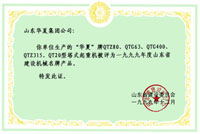 “華夏”牌產(chǎn)品被山東省建設(shè)廳評(píng)為“山東省建設(shè)機(jī)械名牌產(chǎn)品”